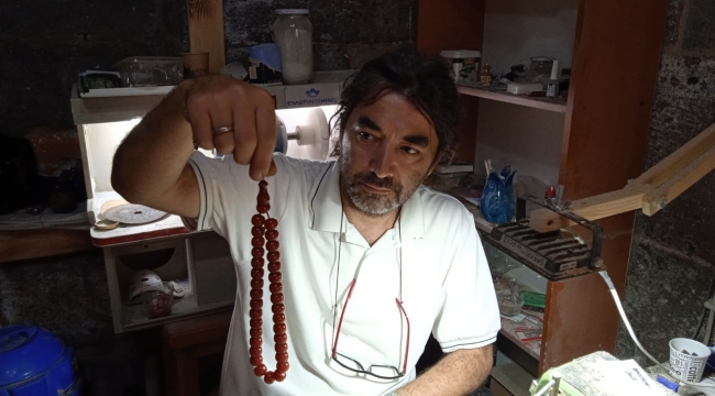 Tesbih üretimi yapan Mustafa Kalaycıgil,"Tesbih yapımı yaklaşık 2-3 gün sürüyor. Kesme, ölçülendirme, taslak çıkarma aşamaları var. Bu işlemler yapıldıktan sonra torna aşaması var. İsteğe bağlı olarak imamede işlem olacaksa oyma aşaması var. Yani tesbih üretimi zor bir süreç. Tesbihi yapmak çok zor. Gönülden yapmak gerekiyor. Tesbih emek, muhabbet ve aşk istiyor. Güzel bir tesbih için bunların hepsinin olması gerekiyor. Bunların hepsini bir noktada birleştirdiğiniz zaman ortaya tesbih çıkıyor. Kehribardan ve ağaç gruplarında tesbih yapıyoruz. Örnek verecek olursak, pelesenk ağacından, abanoz ağacından, kuka ağacının cevizinden yapıyoruz. Bunlar baya sert ağaçlar ve bu ağaçların dilinden anlamak gerekiyor. Özellikle oyma yaparken ve tornalarken. Normal ateş ve sıkma kehribar dediğimiz tesbihlerimiz 80-100 TL'den başlıyor ve yukarı doğru fiyatları çıkıyor. Malzemenin kalitesi, hamurun kalitesi, ürünün eskiliği yeniliği ürünün değerini değiştiriyor. Mesela Osmanlı dönemine ait olan bir tesbih çok daha farklı oluyor" dedi.