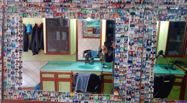 Özalp ilçesinde berberlik yapan Ahmet Seleş, 23 yıldan bu yana dükkanında tıraş ettiği müşterilerinden yaklaşık 2 binin üzerinden vesikalık fotoğraf topladı. Topladığı fotoğrafların bin 200'ünü iş yerindeki aynaların etrafına yapıştıran Seleş, geri kalanları ise yer olmadığı için özel kutularda saklıyor.