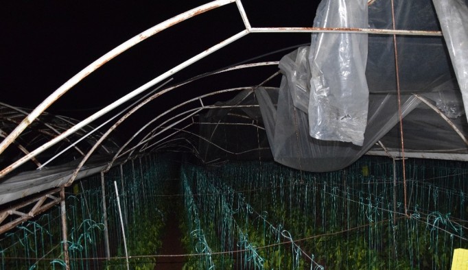 Kumluca ilçesinde dün akşam saatlerinde başlayan sağanak yağmur ve ardından ortaya çıkan hortum seralara zarar verdi.