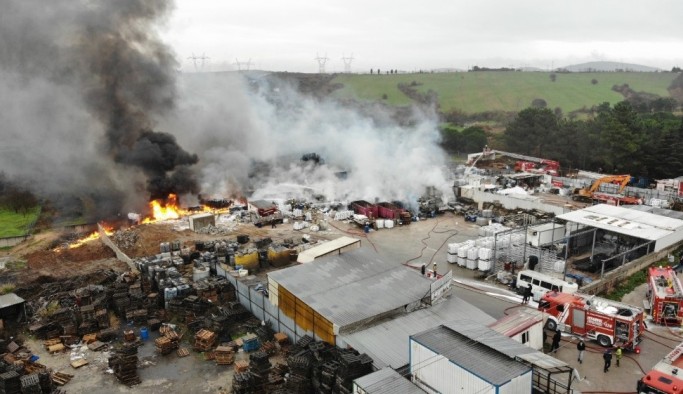 Tuzla’da bulunan bir fabrikanın bahçesinde çıkan yangın drone ile havadan görüntülendi.