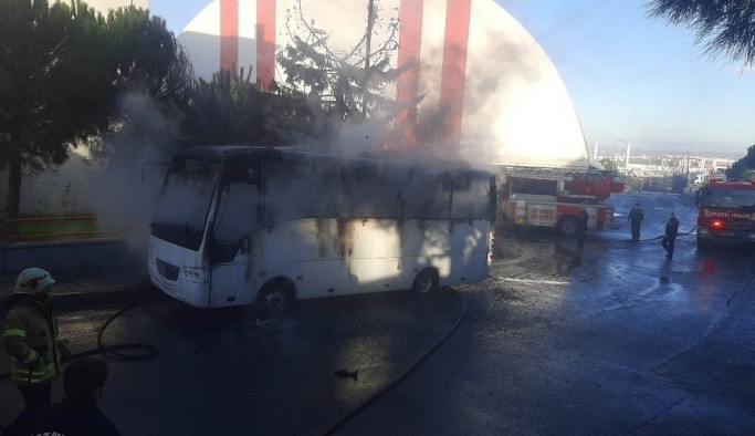 Silivri’de park halinde servis midibüsü alev alev yandı.