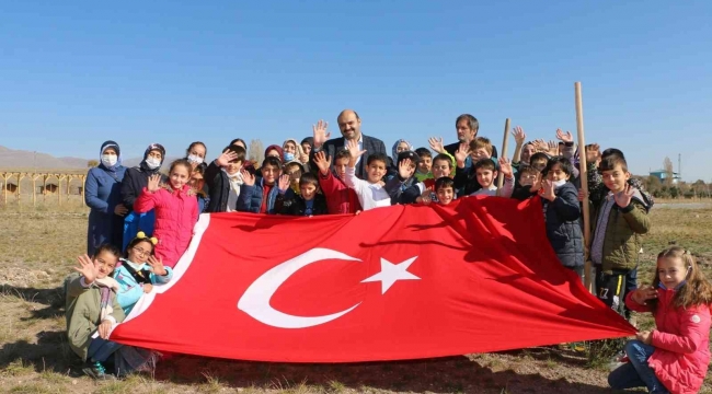 Aziziyeli çocuklar, Cumhuriyet'in kuruluşunun 98'inci yılında tam 98 fidanı toprakla buluşturdu. .