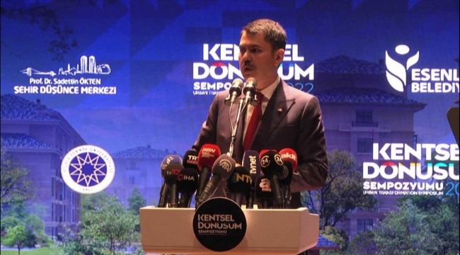 Sempozyumda bir konuşma yapan Çevre, Şehircilik ve İklim Değişikliği Bakanı Murat Kurum, 39 ilçede kentsel dönüşüm çalışmalarının devam ettiğini ifade ederek, "Kentsel dönüşümle ilgili ilk planlı çalışmaların, Dünya Savaşlarının harap ettiği şehirleri canlandırmak için başlatıldığını görüyoruz. Türkiye'de gerçek manada kentsel dönüşüm tarihinin çok da eskiye gitmediğini söylemek gerekir. 1950'lerden sonra başlayan göç, sağlıksız ve düzensiz yapılaşmaya yol açar. Plansız bir kentsel gelişme süreci yaşanırken, şehirlerin çeperleri kaçak yapılar ve gecekondular ile kuşatılır, tarihi ve doğal alanlar gecekondularla tahrip edilir. Çeşitli girişimler olsa da ortaya güçlü bir irade ve büyük bir vizyon konamaz. Cumhurbaşkanımızın 1994 yılında İstanbul'da başlattığı sosyal konut uygulamaları, 99 depreminin ardından 2002 yılında Türkiye sathında yaygınlaştırılan yapı denetimleri, güvenli, sağlıklı afet konutu projeleri, TOKİ eliyle bir biri ardına ortaya sosyal konut hamleleri bu konuda en önemli adımlar olmuştur. Türkiye; yıl 2012'yi gösterdiğinde tüm bu çalışmaların seviyesini en yüksek noktaya taşıyarak 'Türkiye'nin her yerinde kentsel dönüşüm' sloganıyla atağa kalkmış; tarihin en büyük şehircilik hareketi olan dönüşüm çalışmalarını bir seferberlik anlayışıyla başlatmıştır" dedi.