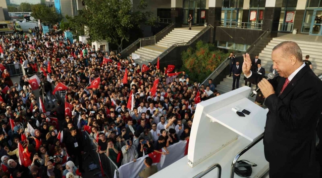 Cumhurbaşkanı Recep Tayyip Erdoğan, Sinan Erdem Kapalı Spor Salonu'nda düzenlenen TÜGVA 5. Olağan Genel Kurulu ve 6. Gençlik Buluşması'na katıldı. Cumhurbaşkanı Erdoğan, spor salonu girişindeki gençlere hitap etti.