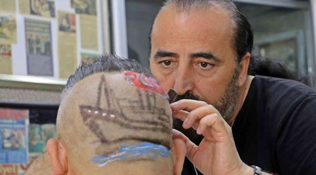 Modeli kafasına kazıtan Sinan Akıner de, milli duygularla hareket ederek böyle bir saç modeli yaptırmak istediğini ve çizimi oldukça başarılı bulduğunu söyledi.