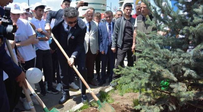Konuşmaların ardından Vali Okay Memiş törene katılan protokol mensupları ve öğrenciler ile birlikte fidan dikti.
