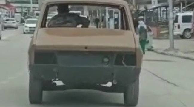 Camları ile ön ve arka lambaları olmayan bir otomobille Akpınar Caddesi'nde gezen sürücüyü gören vatandaşlar şaşkına döndü. Tehlike saçan plakasız otomobili takibe alan bir başka sürücü o anları cep telefonuyla saniye saniye kaydetti. Otomobilin bozuk olan bagaj kapağı da zaman zaman açıldı.