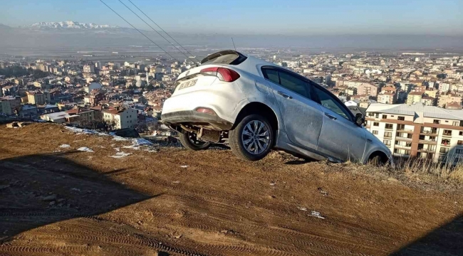 Afyonkarahisar'ın Sandıklı ilçesinde kontrolden çıkan bir otomobil yol kenarındaki kayalıklara takılarak askıda kaldı.
