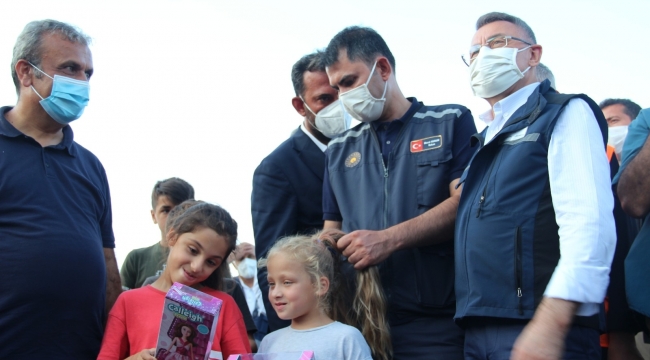 Sel felaketinin yaşandığı Kastamonu'nun Bozkurt ilçesinde incelemelerde bulunan Cumhurbaşkanı Yardımcısı Fuat Oktay, ziyaretleri esnasında kendisine 'Fuat dede ne yapıyorsun?' diye seslenen çocuklara kayıtsız kalmayarak, çeşitli oyuncaklar hediye etti.