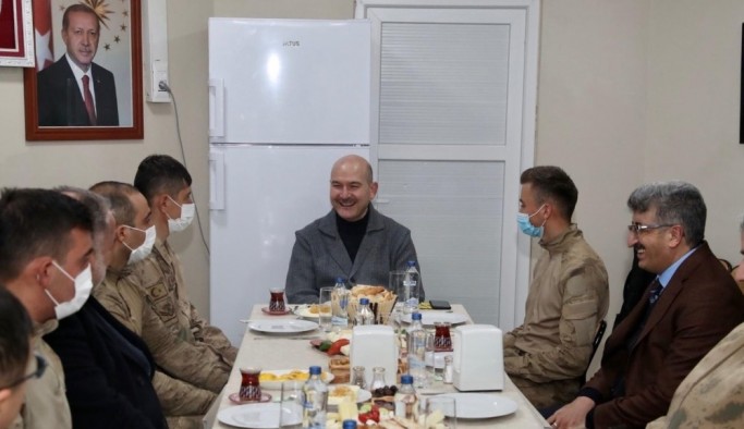 İçişleri Bakanı Süleyman Soylu, yeni yılın ilk kahvaltısını Van’ın Çatak ile Şırnak’ın Beytüşşebap ilçeleri arasındaki Kato Jirka bölgesinde bulunan Belbuka Kalekol Üs Bölgesi Komutanlığındaki askerlerle yaptı.