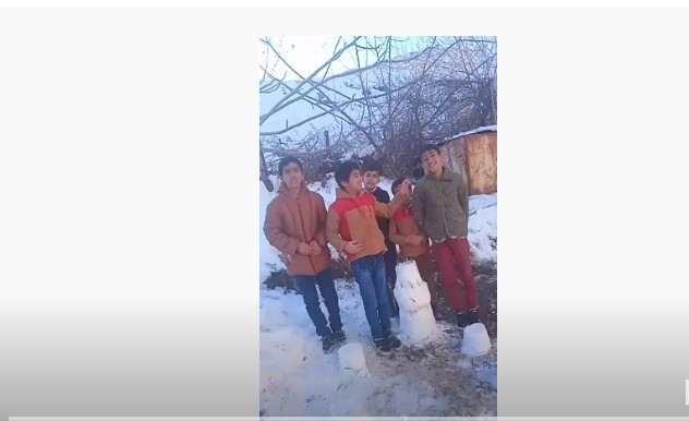 Yeni Mahalle 1430 sokakta bir araya gelen çocuklar 10 yaşındaki arkadaşları Hüseyin İrdem’in doğum günü olması nedeniyle kardan 3 katlı doğum günü pastası yaparak kendisine sürpriz yaptılar.