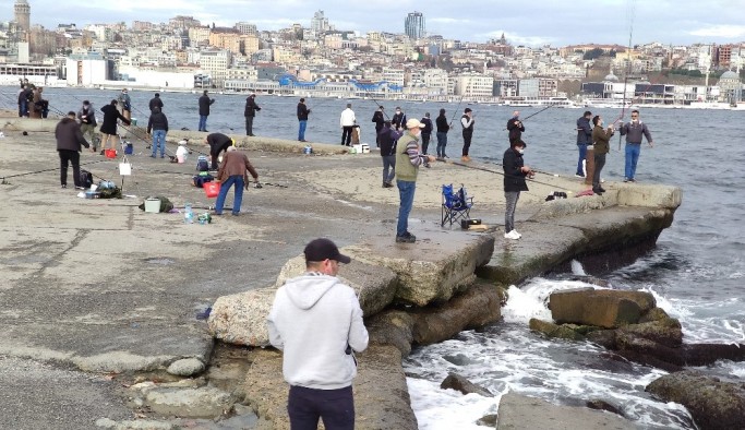 Korona virüs tedbirleri kapsamında uygulanan sokağa çıkma kısıtlamasının ardından güneşi gören vatandaşlar, oltalarını alarak Sarayburnu Sahili’ne akın etti.