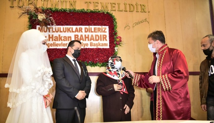 Bahçelievler’de yaşayan 67 yaşındaki Beşire Tüysüz, kanser hastalığının ilerlemesi üzerine 3 çocuğundan birisi ve bekar olan kızının mürüvvetini bir an önce görmek en büyük isteği oldu. Aileler bu durumdan dolayı nikâhı bir an önce kıymak istedi. Ancak pandemi sürecinden dolayı belediyelerin nikah salonlarındaki doluluktan dolayı annenin isteği bir türlü gerçekleşmedi. Damat adayı Nevzat Süren ve anne Beşire Tüysüz’ün kızı Gülhan Tüysüz sosyal medya üzerinden Bahçelievler Belediyesine ulaştı. Belediye çalışanları durumu hemen yetkili merciye ulaştırdı. Durumu öğrenen Bahçelievler Belediye Başkanı Hakan Bahadır çağrıya kayıtsız kalmayarak, nikâhın bir an önce kıyılmasını istedi. Belediye Başkanı Hakan Bahadır gelin ve damadın nikâhını kendisi kıyarak anne Beşire Tüysüz’e büyük mutluluk yaşattı. Nikahın ardından gelin ve damada evlilik cüzdanını ise Beşire Tüysüz teslim etti. Yaşananlar salonda bulunanları da duygulandırdığı görüldü.
