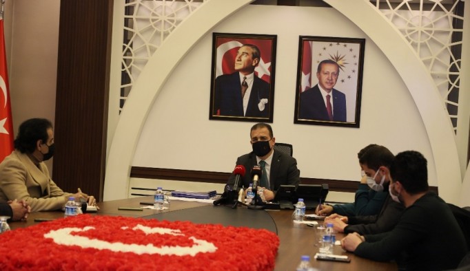 Vali Akbıyık, toplantı sonrasında gazetecilerin yeni yılını kutlayarak değişik hediyeler verdi.