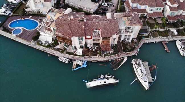 İzmir Çeşme'de dün akşam meydana gelen hortum felaketinin boyutları gün ağarınca ortaya çıktı. Hortumun içine kattığı alanda bulunan ev ve arabalarda büyük zararın olduğu görülürken, felaketten en fazla zarar gören Alaçatı Mahallesindeki lüks site havadan görüntülendi.