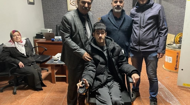 İş İnsanı Yunus Dağ, Hasta Hakları Derneği Genel Başkanı Abdulnasır Polat'la birlikte Şükrüpaşa Mahallesinde ikamet eden Engelli Mustafa Meral'e akülü sandalye hediye etti.