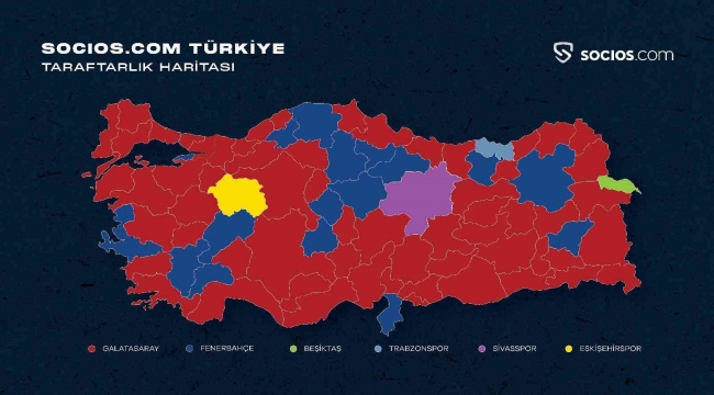 Dünyanın en büyük taraftar etkileşim platformu Socios.com tarafından Türkiye taraftarlık raporu açıklandı. Anket sonucuna göre Galatasaray taraftar sayısında 60 ilde birinci oldu.
