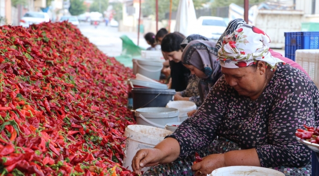 Kırmızı biberiyle ün yapan Gaziantep'in İslahiye ilçesinde biber hasadının başlaması ile birlikte bölgede yaşayan kadınlar da ev ekonomisine katkıda bulunuyor. Sokak aralarına serilen biberlerin çöpünü temizleyerek para kazanan kadınlar, biberlerin kilosunu 50 ila 60 kuruşa temizliyor.
