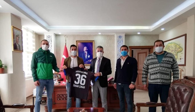 Bölgesel Amatör Lig (BAL) Ligi’nde 2020-2021 sezonunda Kars’ı temsil edecek Kağızman Gençlerbirliği Spor yöneticileri ziyaret ettikleri Kaymakam İshak Çınar ve Belediye Başkanı Nevzat Yıldız’a 36 numaralı formayı hediye ettiler.