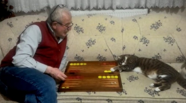 Kedinin evin neşe kaynağı olduğunu ifade eden Baki Güven, "İki yıl önce sokakta yavruyken sahiplendik. Eşimle birlikte özellikle pandemi sürecinde kediye daha çok vakit ayırabildiğimiz için samimiyetimiz daha fazla arttı. Evde canımız sıkıldı tavlayı açtım. Koşa koşa geldi, sanki rakibim olarak karşıma oturdu. Kapı alır gibi patileriyle pulları çekti, yerlerine koydu. İlk acaba renkler mi cazip geldi dedim. Sonra baktım renklerle ilgisi yok pullar ve zarlarla daha çok ilgileniyor. Bize çok iyi bir arkadaş oldu. Evin adeta çocuğu ve torunu gibi" diye konuştu.