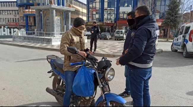 Afyonkarahisar'ın Şuhut ilçesinde hafta sonu uygulanan sokağa çıkma kısıtlaması döneminde bir motosiklet sürücüsünün 'kimliğim yanımda değil,