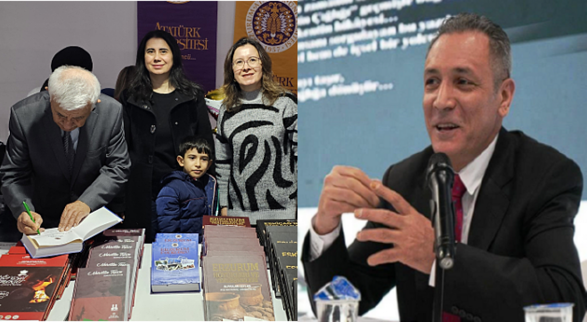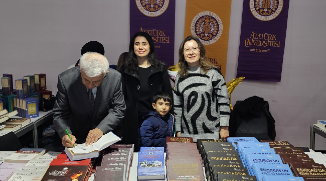 Atatürk Üniversitesi'nin emekli emektar öğretim üyelerinden Dr. Lütfi Sezen, üniversite yayınevi standında "Erzurum Folkloru" kitabını imzaladı.