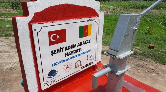 "1000 Şehidimiz İçin 1000 Su Kuyumuz" projesi kapsamında Atatürk Üniversitesinin desteğiyle Kamerun'da açılan su kuyusuna Şehit Adem Akatay'ın adı verildi.