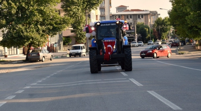 Yapılan konvoy ile Yenişehir caddelerinde dolaşan traktör vatandaşların dikkatini çekerken, çocuklar ve vatandaşlar hatıra fotoğrafı çektirmeyi ihmal etmediler.