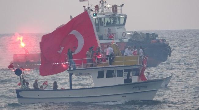 Türk bayrakları ile donatılan teknelerden "Saygı Gezisi"