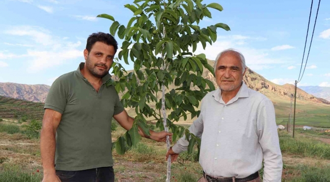 Erzurum'un Şenkaya ilçesindeki Turnalı köyündeki atıl çorak arazileri diktiği 16 bin ceviz fidanıyla yeşertti.