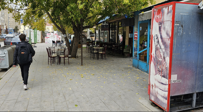 Terminal caddesinde, birkaç yıl önce bir cafe işletmecisinin önüne çıkıntı yaparak sonra da işletmesine modern şekilde dahil ettiği yer, yandakine, üstekine, alttakine velhasıl caddenin karşısına boydan boya örnek oldu.